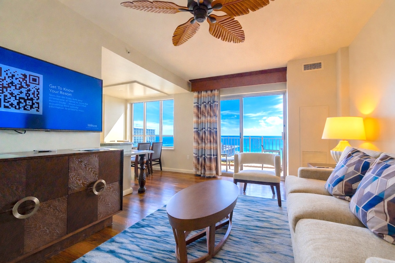 ハワイ島。ショッピングや観光を目的としない、ゆったりとした滞在が満喫できる。お部屋タイプは夫婦2人の利用なのでワンベッドルームで十分な広さである。