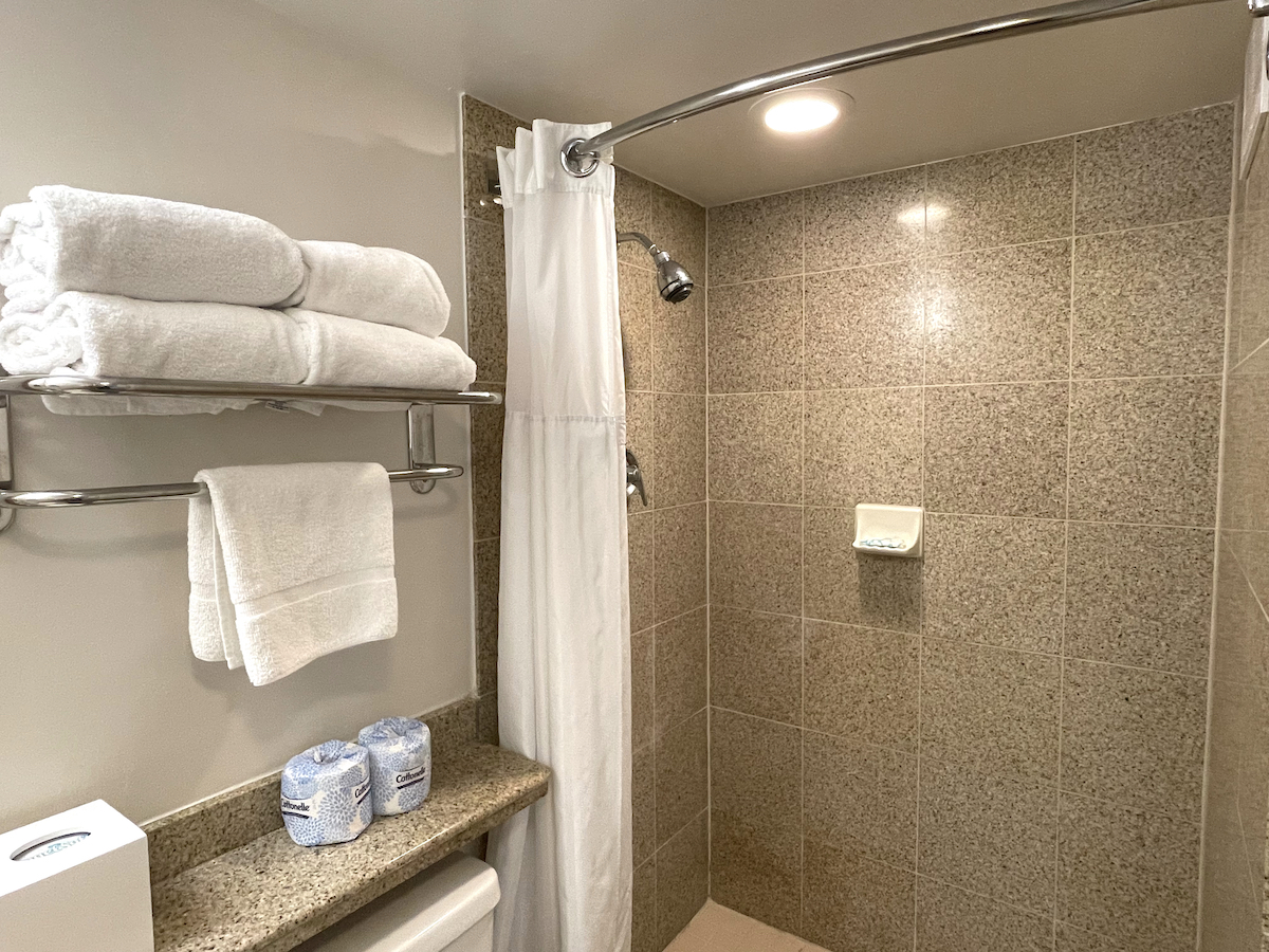 バスルームにはトイレ、洗面台、シャワー(浴槽なし)があります。アメニティもついていますので、最初の数日はシャンプーなどを購入する必要がありません。追加で必要な場合には、ご自身で用意する形になっているそうです(2021年8月調査)。タオルなどは、下のオフィスへ申し出れば追加でいただくことができます。
